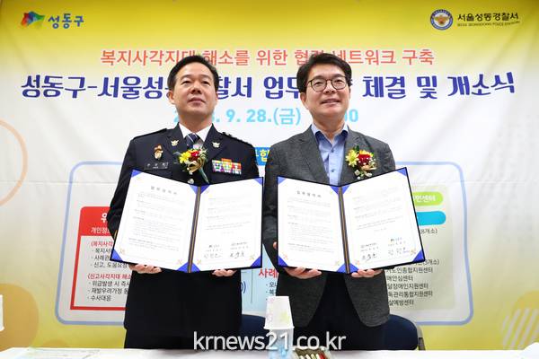 정원오 성동구청장은 “위기가정 통합지원센터를 중심으로 복지 돌봄 안전망과 경찰의 치안 역량이 결합돼 위기가정 지원을 강화하는 시너지 효과를 낼 수 있을 것으로 기대된다”며, “앞으로도 포용적 복지 실현을 위해 복지사각지대 해소에 힘쓰겠다”고 전했다.
