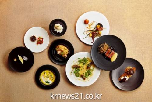 가을 시즌 셰프 테이스팅 메뉴는 총 7코스로, 제철 식재료 본연의 맛을 살린 다채로운 요리로 구성돼 수준 높은 미식 경험을 제공한다. 메인 메뉴는 총 2가지로 이베리코 돼지 늑간살과 치미추리 구이 또는 뒥셀을 곁들인 1++ 한우등심 구이 중 한 가지를 선택할 수 있다. 이 외에도 고객들은 △프로슈토, 레몬젤리, 아오리사과를 곁들인 차가운 콘 스프, △무화과를 곁들인 클래식 푸아그라 테린, △부드럽게 조리한 낙지와 가지퓨레, △성게알, 새우, 갑오징어를 곁들인 해산물 리소토, △애플 라임 민트 소르베 등 맛과 영양을 세심하게 고려한 요리를 즐길 수 있다. 마지막으로 대표적인 가을철 식재료인 달콤한 밤을 재구성해 다양한 식감을 느낄 수 있도록 한 디저트가 커피 또는 차에 곁들여 제공된다.