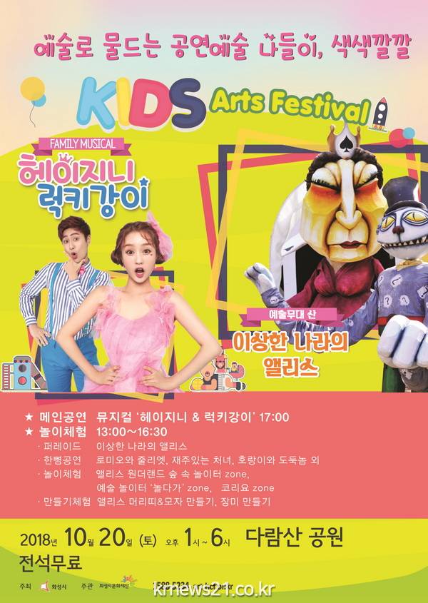 온 가족을 위한 공연예술 축제 <</span>예술로 물드는 공연예술 나들이, 색색깔깔 ‘키즈 아츠 페스티벌’>(이하 키즈 아츠 페스티벌)이 화성시 다람산 공원에서 10월 20일(토) 열린다.