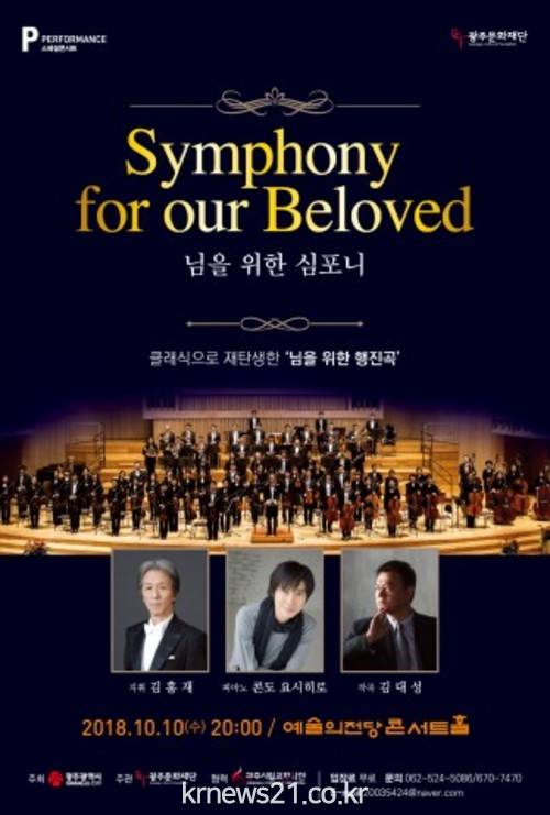 광주광역시와 광주문화재단은 10월 10일 오후 8시 예술의전당 콘서트홀에서 광주시립교향악단(김홍재 지휘)의 연주로 김대성 작곡 ‘님을 위한 행진곡’ 주제에 의한 교향시 <민주(民主)>를 선보인다.