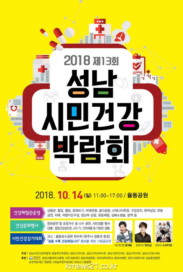 ‘제13회 성남시민 건강박람회’가 오는 10월 14일 오전 11시~오후 5시 분당구 율동공원 일대에서 열린다.