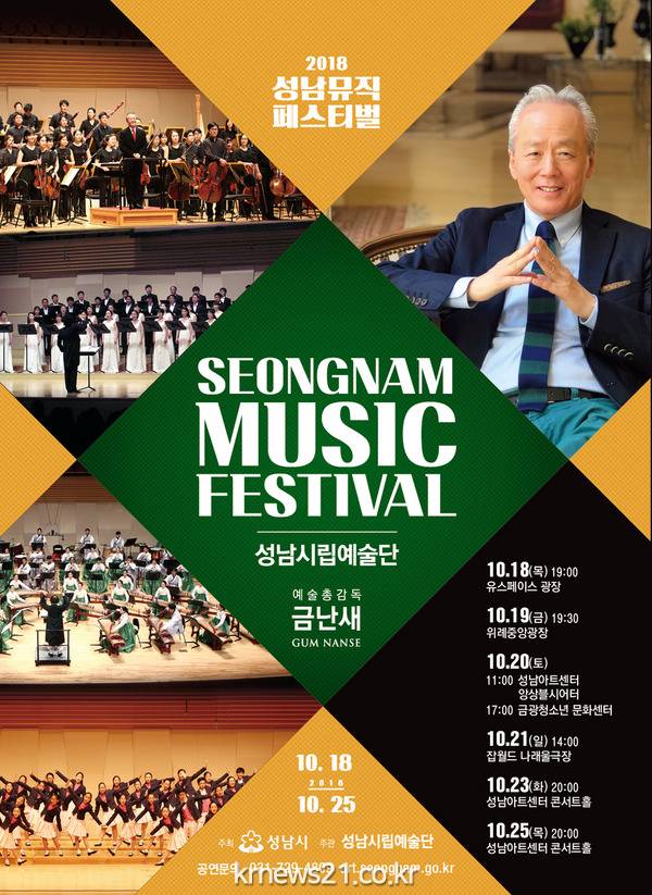 금난새 성남시 총 예술 감독 겸 성남시립교향악단 상임 지휘자가 총연출을 맡는 이번 페스티벌은 성남시립교향악단·국악단·합창단·소년소녀합창단 등 4개 시립예술단과 시민합창단, 성남 유스 오케스트라 등이 출연하는 대규모 음악회로 펼쳐진다.