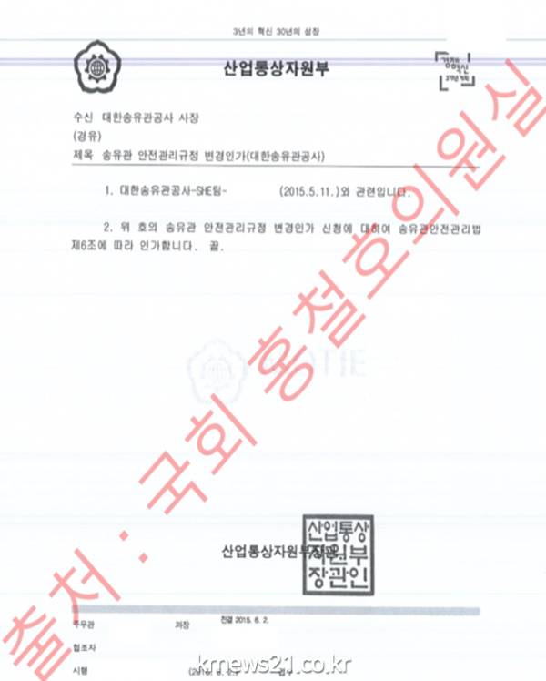 홍철호 의원은 “현행법에 따르면 산업통상자원부장관은 송유관관리자와 그 종사자가 안전관리규정을 지키고 있는지 확인해야 한다”며 “산업 및 소방 당국은 전국 저유소 등에 대한 안전점검실태조사를 실시하여 각종 안전사고를 미연에 방지해야 한다”고 말했다.