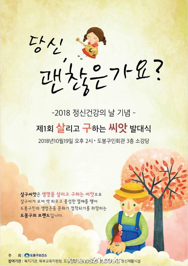 또한 ‘생명을 살리고, 구하는, 씨앗’이라는 슬로건으로 도봉구민의 생명존중 및 자살예방 ‘살.구.씨. 운동’ 선포식 및 발대식도 진행될 예정이다.