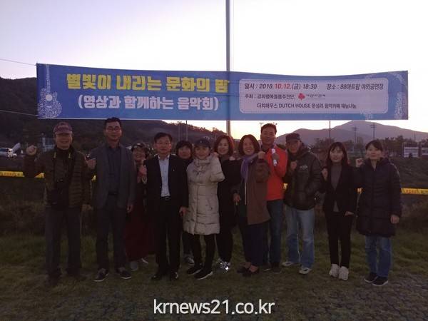 ▲ (사진=영평군청)강하행복돌봄추진단(이수한 단장)은 소외계층과 일반주민들을 대상으로 화합과 감사의 영상 음악회가 88아트팜 야외공연장에서 개최했다.