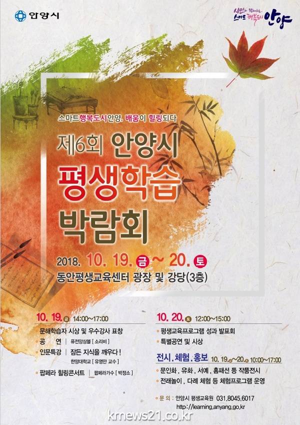 안양시(시장 최대호)는 오는 19일과 20일 평생교육원에서 제6회 안양시 평생학습박람회를 개최한다.