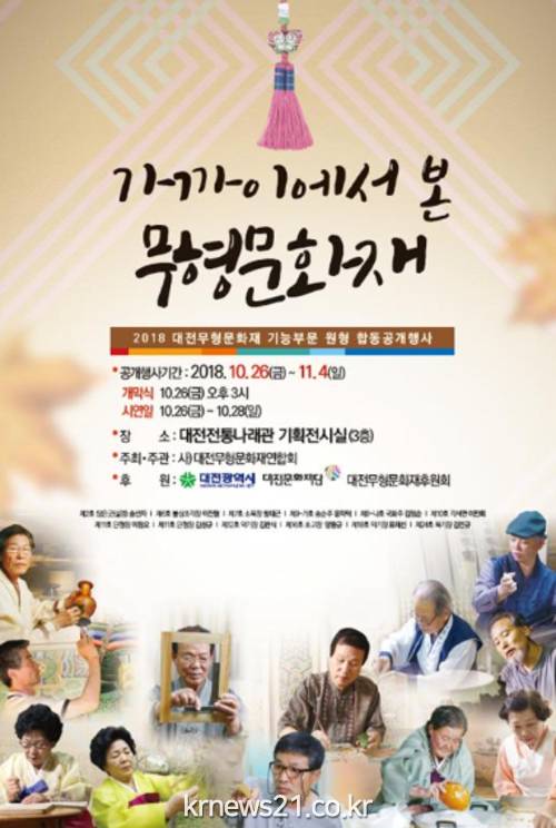 ▲ (사진=대전광역시청)대전시는 오는 26일 대전전통나래관(동구 소제동)에서 2018. 대전 무형문화재 기능종목 합동 공개행사 ‘가까이에서 본 무형문화재’를 개최한다.