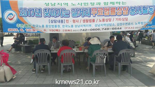 한국노총 성남 노동법률 상담소는 올해로 13년째 길거리 무료 법률 상담을 이어오고 있다.