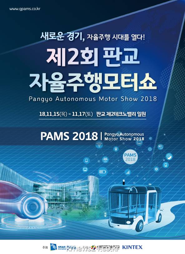 경기도는 “성남시 판교 제2 테크노밸리 일원에서 오는 11월 15일부터 17일까지 3일간 ‘제2회 판교 자율주행 모터쇼(PAMS 2018)’를 개최한다고 29일 밝혔다.