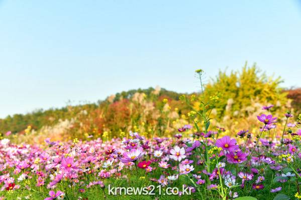 바람결에 일렁이는 코스모스 물결은 깊어가는 가을의 정취를 더한다.
