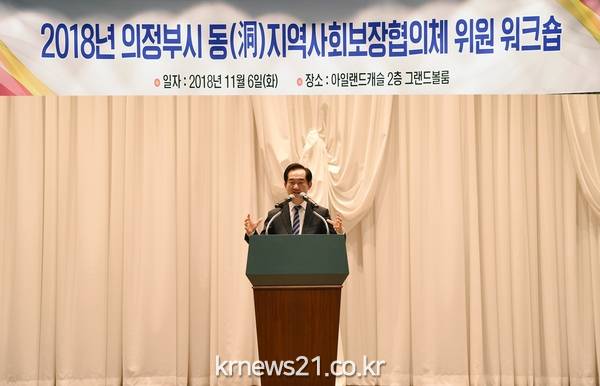 의정부시(시장 안병용)는 11월 6일 아일랜드캐슬 그랜드볼룸에서 2018년 동(洞) 지역사회보장협의체 위원 워크숍을 개최했다.