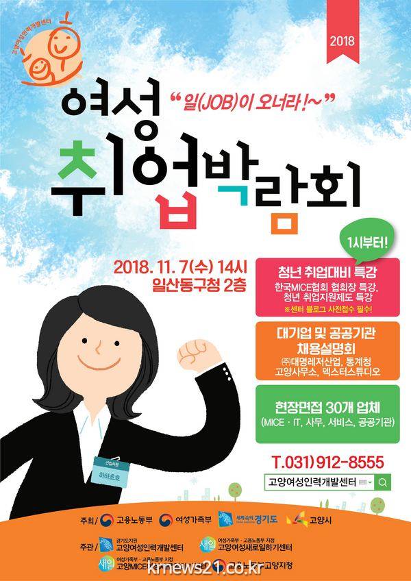 고양시가 주최하고 고양시 여성 인력개발센터에서 주관하는 ‘2018년 호호 여성 취업박람회’가 오는 7일(수) 오후 2시부터 5시까지 일산동구청 2층 대회의실에서 개최된다.