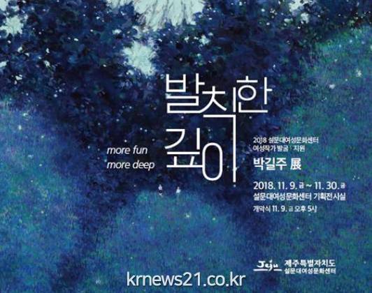 ▲ (사진=제주자치도청)제주특별자치도설문대여성문화센터(소장 고춘화)에서는 오는 9(금)일부터 30(금)일까지 <2018 여성작가 발굴․지원 - 「박길주-발칙한 깊이」 展>을 개최한다고 7일 밝혔다.