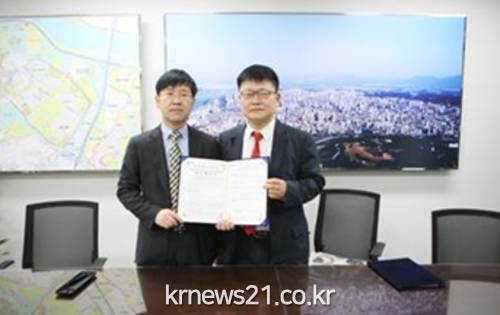 ▲ (사진=강동구청)강동구 둔촌동 85-2호, 삼익연립 주택재건축 단지 내에 청소년 수련시설이 건립된다. 구는 청소년 수련시설의 원활한 건립과 상호 유기적인 협조 체계를 구축하기 위해 둔촌동삼익빌라주택재건축정비사업조합과 업무협약을 체결했다.