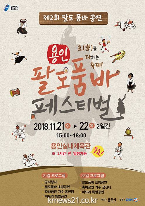 용인시는 오는 21~22일 처인구 마평동 용인 실내체육관에서 전국 팔도의 15개 팀이 품바 공연을 선보이는 ‘용인 팔도 품바 페스티벌’을 개최한다.