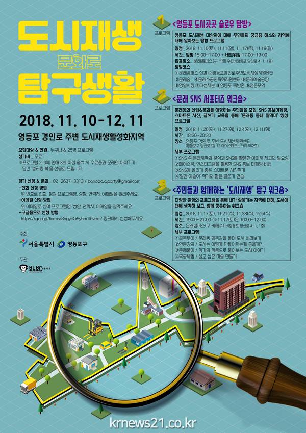 ▲ (사진=영등포구청)영등포구(구청장 채현일)가 내달 11일까지 도시재생에 대한 주민 관심과 참여를 확대하기 위해 ‘도시재생 문화로 탐구생활’을 운영한다.