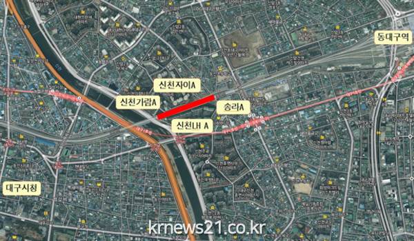 동구 신천동, 신암동에 설치된 경부고속철도 복개구조물(B=22m, L=507m)은 한국철도시설공단에서 경부고속철도 대구도심 통과구간 건설공사 시 아파트 밀집구간의 방음 및 일부구간 보행자 통로를 확보하기 위해 설치한 것으로, 상부가 콘크리트로 마감되어 있어 눈부심, 복사열, 미관저해 등 각종 문제를 유발해 왔다.