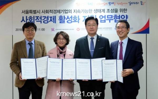 이번 협약을 통해 네 기관은 △사회적경제기업 발굴 및 육성 △사회적경제기업 단계별 맞춤형 금융 지원 △사회적경제기업 수출 및 판로 개척 △경영혁신 컨설팅 등 사회적경제기업 성장 및 생태계 조성에 협력할 예정이다.