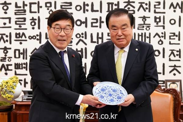 신동헌 광주시장은 지난 23일 국회를 방문, 문희상 국회의장을 만나 ‘지방도 325호선 초월 물류단지 중부IC 개설 사업’ 등 주요 현안사업에 대한 당위성을 설명하고 국비 지원 등의 적극적인 협조를 요청했다.
