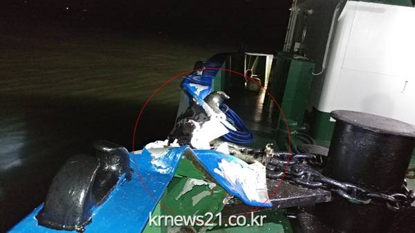 새만금 방조제로 항해 중 고흥 외나로도 해상에서 서로 충돌하였으나, 양 선박 간 자력