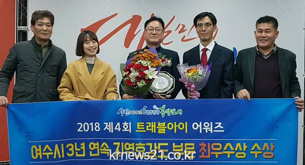여수시(시장 권오봉)가 2016~2017년에 이어 올해 트래블아이 어워즈에서도 최우수상을 받으며 3년 연속 지역호감도 기초지자체 부문 전국 1위를 달성했다.