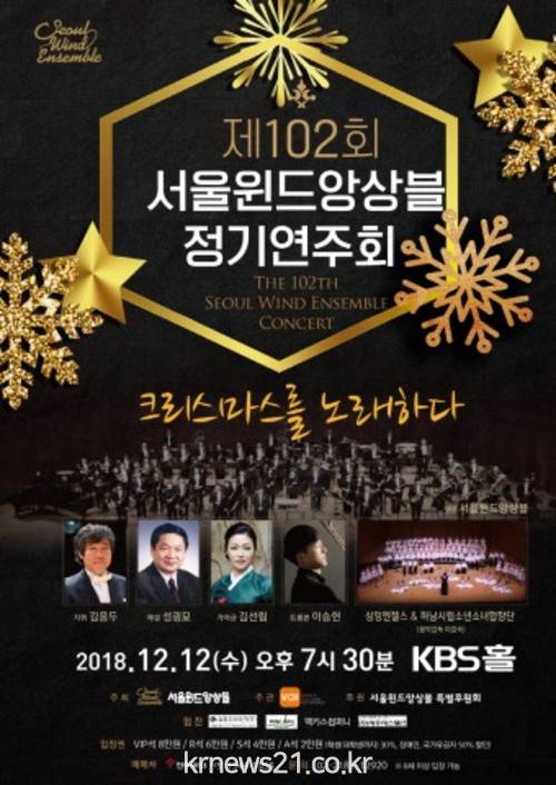 서울윈드앙상블이 제102회 정기연주회를 12월 12일(수) 오후 7시 30분 서울 KBS홀에서 개최한다.
