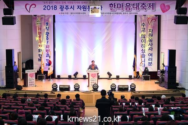 (사)광주시 자원봉사 단체협의회(박건희)는 지난 1일 시청 대회의실에서 자원봉사자의 날을 기념해 ‘2018 광주시 자원봉사자 한마음 대축제’를 개최했다.