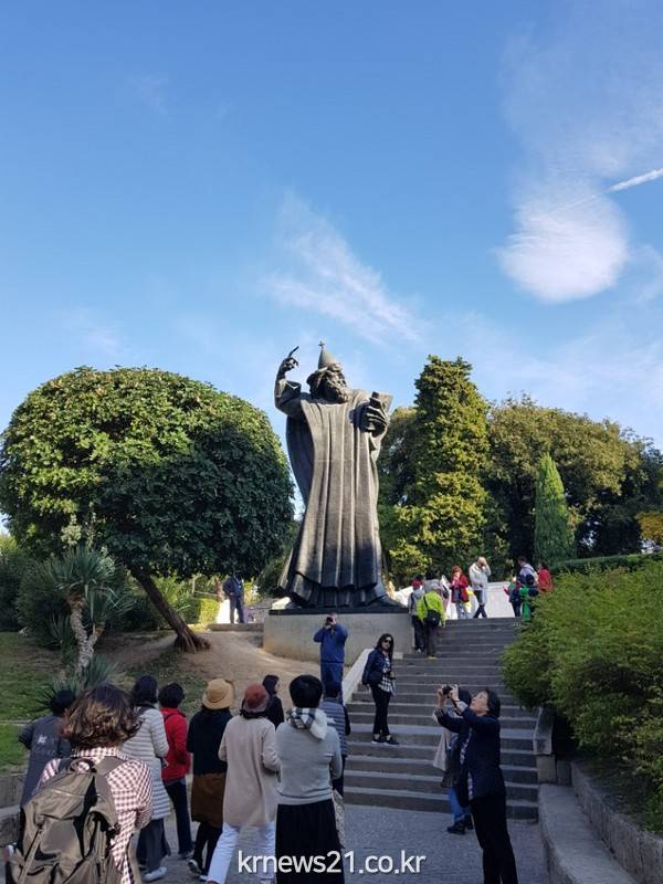 크로아티아 디오클레시안 궁전 북문에 있는 높이 4.5m에 달하는 거대한 그레고리우스 닌 동상. 이 동상은 행운을 가져다주는 동상으로도 알려져 있다.