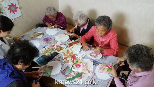 정서적 건강증진을 위해 만다라 색칠하기, 손톱 매니큐어 칠하기, 노래와 손유희, 젠가 게임, 퍼즐 맞추기, 개구리 개운죽·잔디인형·실팽이·부채 냅킨공예·죽방울 만들기, 산가지 놀이 등 다양한 주제로 프로그램을 운영하여 흥미와 삶의 활력을 부여했다.