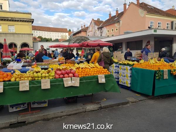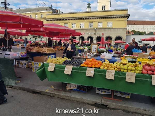 크로아티아의 삶을 엿볼 수 있는 자그레브 명물 돌라치시장. 오후 3시까지만 연다.