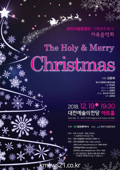대전시립합창단은 오는 19일 오후 7시 30분 대전예술의전당 아트홀에서 기획연주회 12 가족음악회 ‘The Holy & Merry Christmas’를 무대에 올린다.