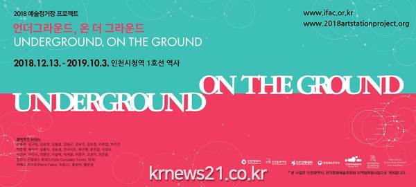 ○ 이번 예술정거장 프로젝트 ‘언더그라운드, 온 더 그라운드(Underground, on the Ground)>’라는 주제로 인천시청에 3개국(한국, 미국, 프랑스) 29명의 작가가 참여, 30여 작품을 선보인다. 전시장을 벗어나 일상생활 공간이자 교통거점인 인천시청역 곳곳에서 시민들이 다양한 현대미술 작품을 만나볼 수 있게 하자는 취지다. 전시 제목인 <언더그라운드, 온 더 그라운드(Underground, on the Ground)>의 ‘언더그라운드’는 말 그대로 지하를 의미한다. 다른 의미로는 주류를 나타내는 메인스트림과 대비되는 비주류를 나타내는 단어, 비합법적인 지하운동을 의미하는 단어로 쓰이기도 하고, 영국에서는 땅 밑을 달리는 것이라는 의미로 지하철을 써브웨이(Subway)가 아니라 ‘언더그라운드’라 부른다. 전시 제목 <언더그라운드, 온 더 그라운드>는 지하철역이 단순히 지하철을 타기 위해 기능하는 지하공간이 아닌 이용객 누구나 생활 속에서 다양한 문화예술을 향유하는 공간으로 자리매김하길 바라는 의미를 담는다.