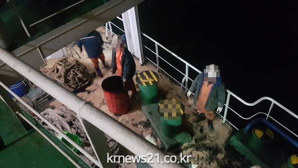 예정이며, 야간이라 정확한 오염군 확인이 어려워 날이 밝는 데로 경비함정을 이용 오염군
