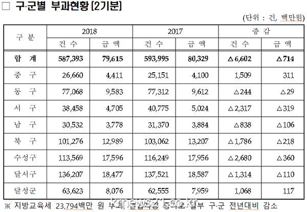 ▲ (사진=대구광역시청)대구시는 관내에 등록된 자동차 58만 7천여 대에 대하여 2018년 제2기분 자동차세 796억 원을 부과 고지했다.