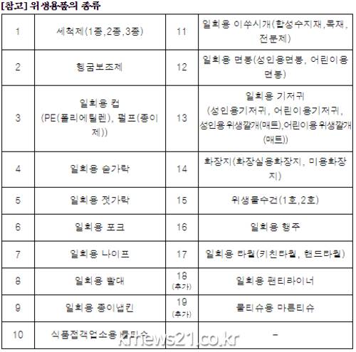 이번 검사는 대전시와 자치구 합동으로 생활용품할인점, 대형마트 등 시민들이 많이 이용하는 제품을 선정해 세척제, 헹굼보조제, 식품접객업소용 물티슈, 일회용 컵, 화장지, 일회용 기저귀 등 17종 458건에 대해 실시됐다.