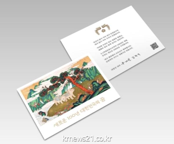 2019년 연하장은 십장생도에 기해년 띠 동물인 돼지 두 마리가 등장하는 현대적 한국화를 표지로 디자인됐다.