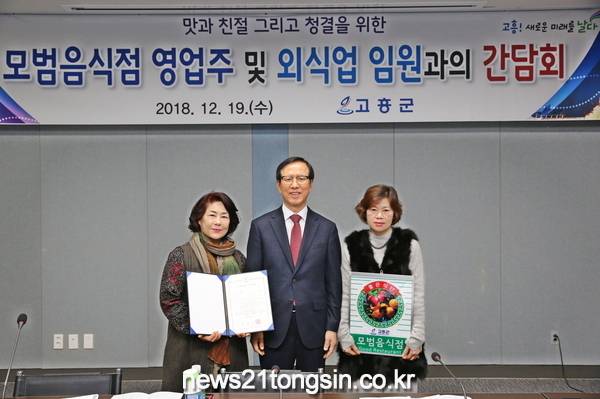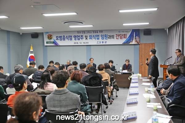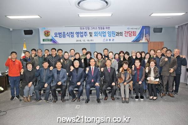 고흥군(군수 송귀근)은 12월 19일에 모범음식점 영업주 및 외식업임원과의 간담회를 개최하여 현장의 애로 사항을 들으며 음식점 발전 방안, 맛과 친절 그리고 청결을 위한 허심탄회한 소통 시간을 가졌다.