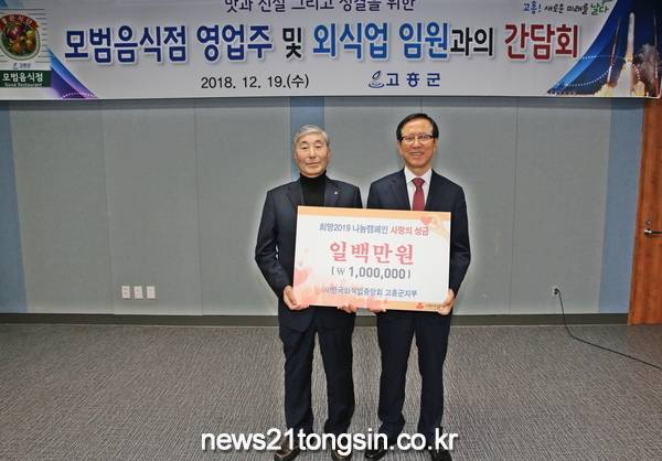 음식점 친절서비스와 위생적 환경 및 선진 음식문화 정착으로 경쟁력 강화 및 자발적인 위생 수준 향상 실천을 통해 군 이미지 제고는 물론 군민소득 증대를 위한 다양한 의견들을 나누었으며, (사)외식업중앙회 고흥군지부에서 희망나눔 성금 일백만 원을 전달했다.