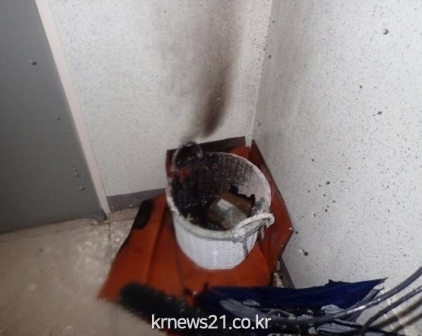 경찰은 한 입주민이 담배꽁초를 쓰레기 바구니에 버려 불이 났다고 보고 정확한 화재 원인을 조사 중이다.