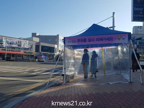 진도군 안전건설과 재난관리담당 관계자는 “최소한 바람만이라도 피할 수 있는 방법을 고민하다가 보행자를 배려할 수 있는 쉼터가 만들어지게 됐다”며 “한파로 인한 주민 불편이 발생하지 않도록 최선의 노력을 다할 것이다”고 밝혔다.