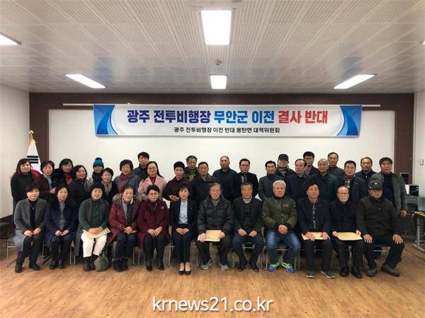 무안군 몽탄면 기관사회단체장 50여명은 8일 면사무소 회의실에서 광주 전투비행장 이전 반대 대책위원회를 구성하고 ‘광주 전투비행장 무안군 이전 반대 성명서’를 발표했다.