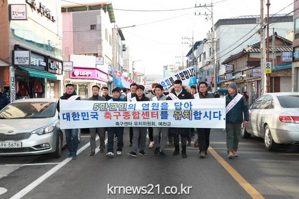 지난 2일 서울 한국프레스센터에서 열린 축구종합센터 유치 기자회견을 통해 유치 의지를 공식화한 예천군은 지역주민 대표로 구성된 유치위원회와 군의 행정력을 총동원하여 유치 분위기를 더욱 끌어올리고 있다.