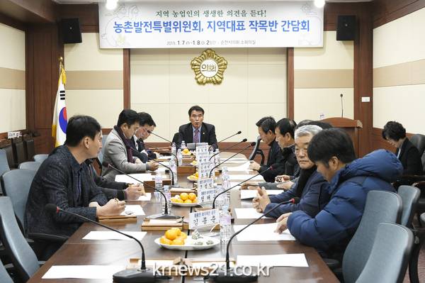 순천시의회(의장 서정진) 농촌발전특별위원회(위원장 박계수)는 순천시 지역대표 작목반과 간담회를 실시하고 애로사항과 건의사항을 청취해 큰 호평을 얻었다.