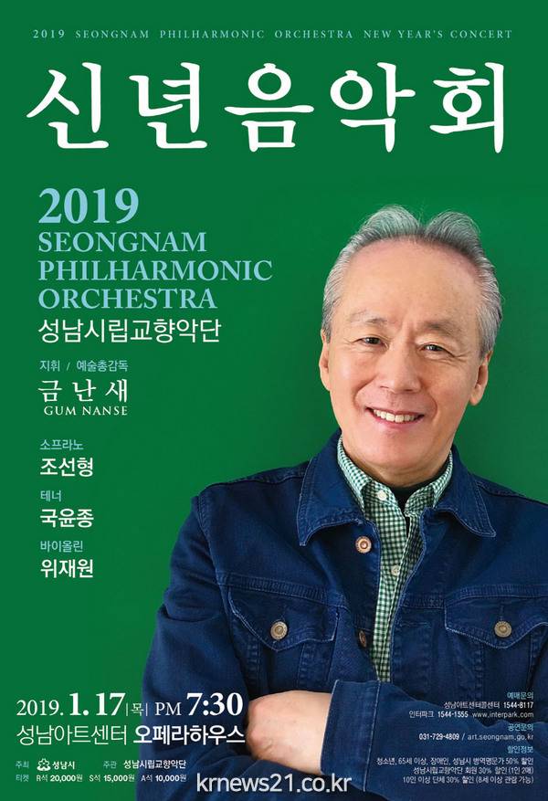 성남시립교향악단의 신년음악회가 오는 1월 17일 오후 7시 30분 성남아트센터 오페라하우스에서 열린다.