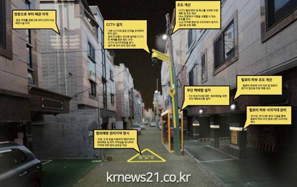 특히, 이번 계획에서는 시민들이 범죄 불안감을 가지고 있는 노후 주거지, 원룸밀집지역, 골목길 등에 대한 범죄예방 디자인 방안을 중점적으로 특화하여 제시하였다.