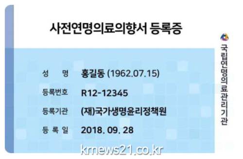 한편 사전연명의료의향서의 효력은 등록증 발급·소지 여부와 관계없이 유효하다.
