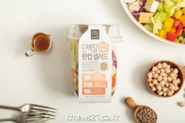 기존 99칼로리한컵샐러드에 단백질을 보강한 콘셉트의 신상품으로 숙명여대의 맞춤식품연구실과 공동 기획해 전문 영양 설계 과정을 거쳤다.