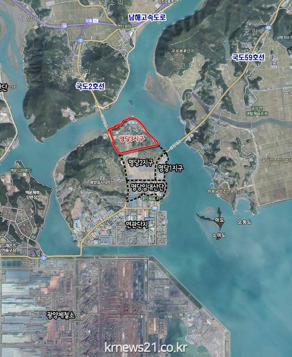 광양국가산업단지 내 마지막 개발지역인 명당3지구는 올해 11월 준공을 목표로 437,998㎡의 부지에 산업단지를 조성하고 있다.