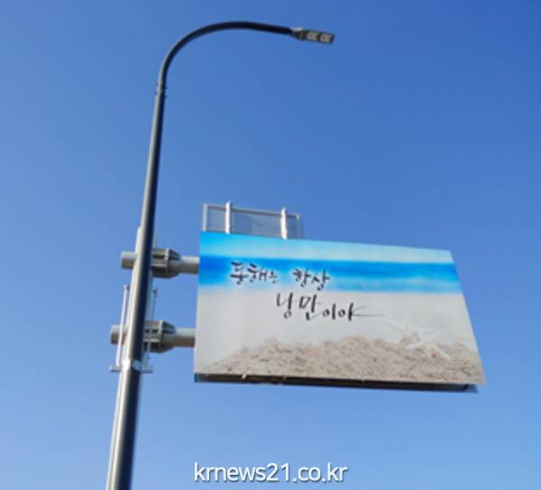 배면 관광표지판은 차량 통행이 많은 관내 주요도로와 관광객들이 많이 방문하는 해변도로의 도로표지판 배면에 감성 문구와 캘리그라피 디자인을 입혀 시민들에게는 힐링과 감성을 전달하고 관광객에게는 신선하고 낭만적인 관광도시 이미지를 부각시키기 위해 설치했다.