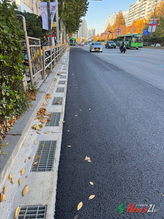 서울 송파구(구청장 서강석)가 지난 13일 잠실역사거리 교차로 일대 배수 구조를 개선하는 공사를 추진하고, 상습적인 노면 빗물고임 문제를 선제적으로 해결했다고 알렸다. 잠실역사거리 일대는 빗물이 도로 바깥으로 자연스럽게 흐르지 못하고 노면에 고이거나 일시적으로 정체되는 일이 잦았다. 도로 중심부에서 도롯가까지 경사가 완만...